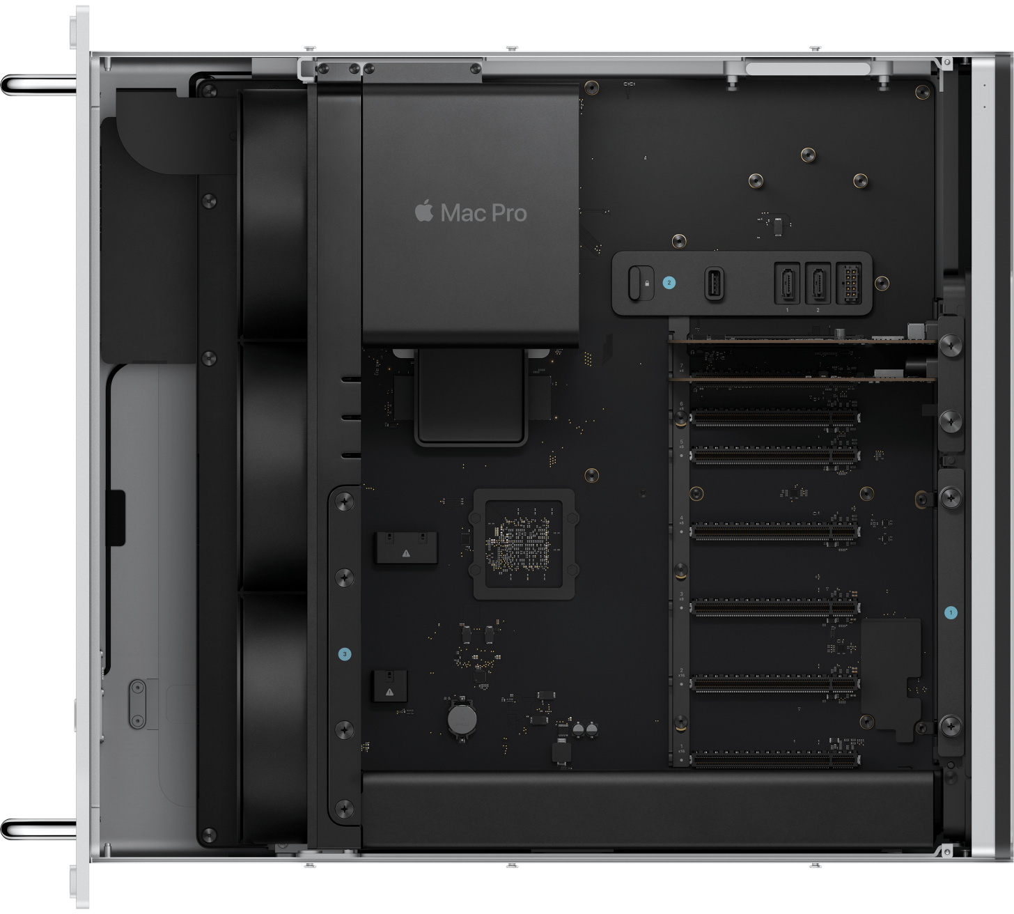 Nya Mac Pro är en banbrytande kombination av högpresterande Apple-chip och PCIe-utbyggnad för specialiserade arbetsflöden. Alla konfigurationer har det nya M2 Ultra-chippet – vårt mest kraftfulla och mångsidiga chip hittills.
