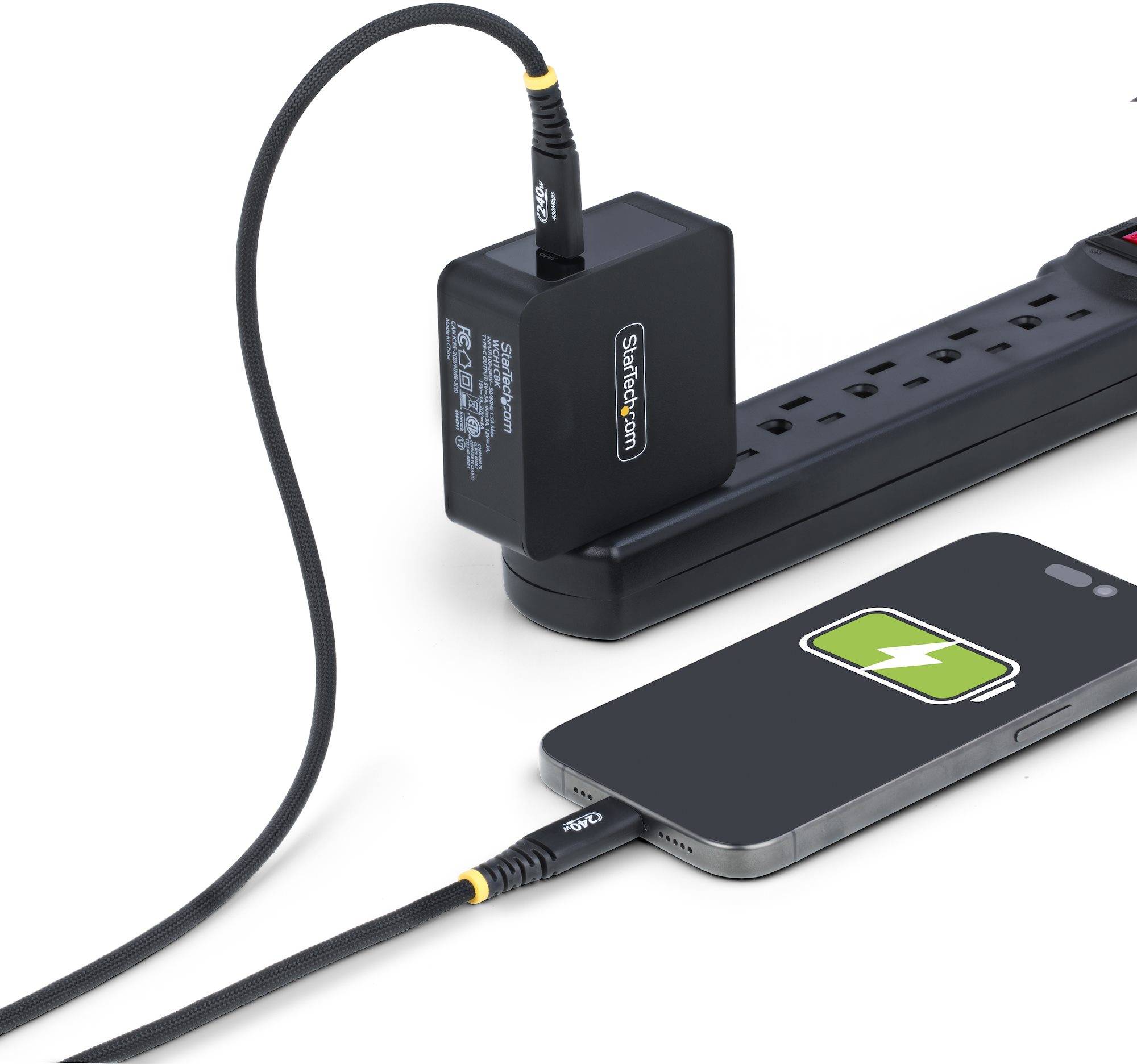 USB-C laddningskabel StarTech Rugged, USB 2.0, 240W, 2 meter - Svart