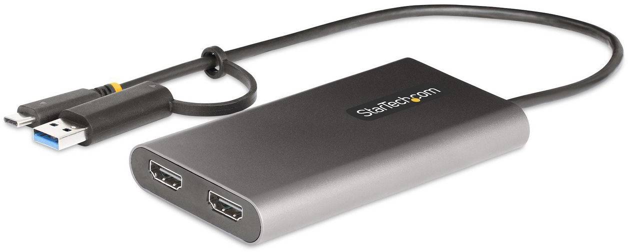 Adapter StarTech.com, USB-C/USB-A till 2xHDMI 4K@60Hz, 100W PD Pass-Through, 0,3 meter kabel