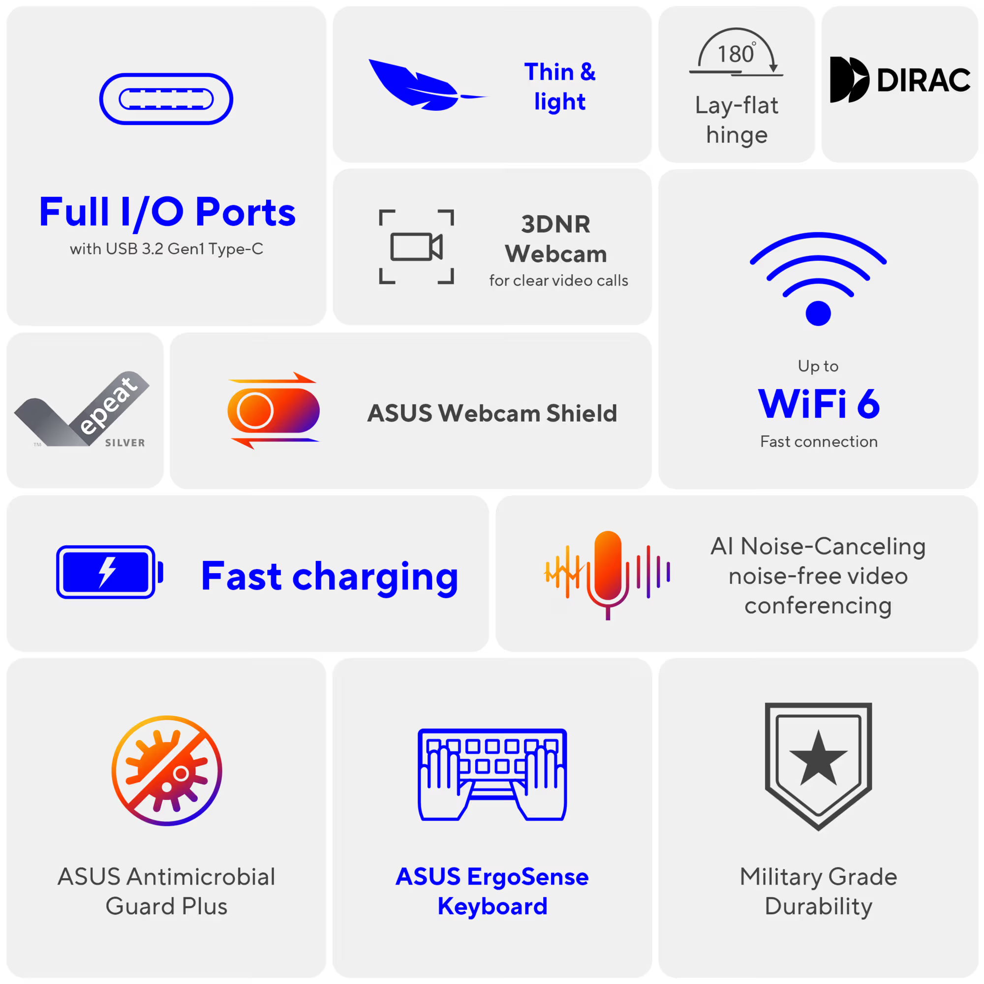 Gör varje dag till något speciellt med Vivobook 15 - din oumbärliga kompanjon för att förenkla vardagens uppgifter oavsett plats. Den är designad för att vara maximalt användarvänlig, med en 180° gångjärn och en fysisk webbkameraskydd för extra integritet. ASUS Antimicrobial Guard Plus skyddar de mest berörda ytorna från skadliga bakterier, vilket säkerställer din hälsa. Upplev glädjen i varje dag med Vivobook 15!