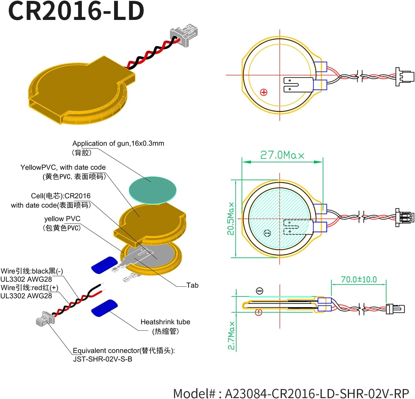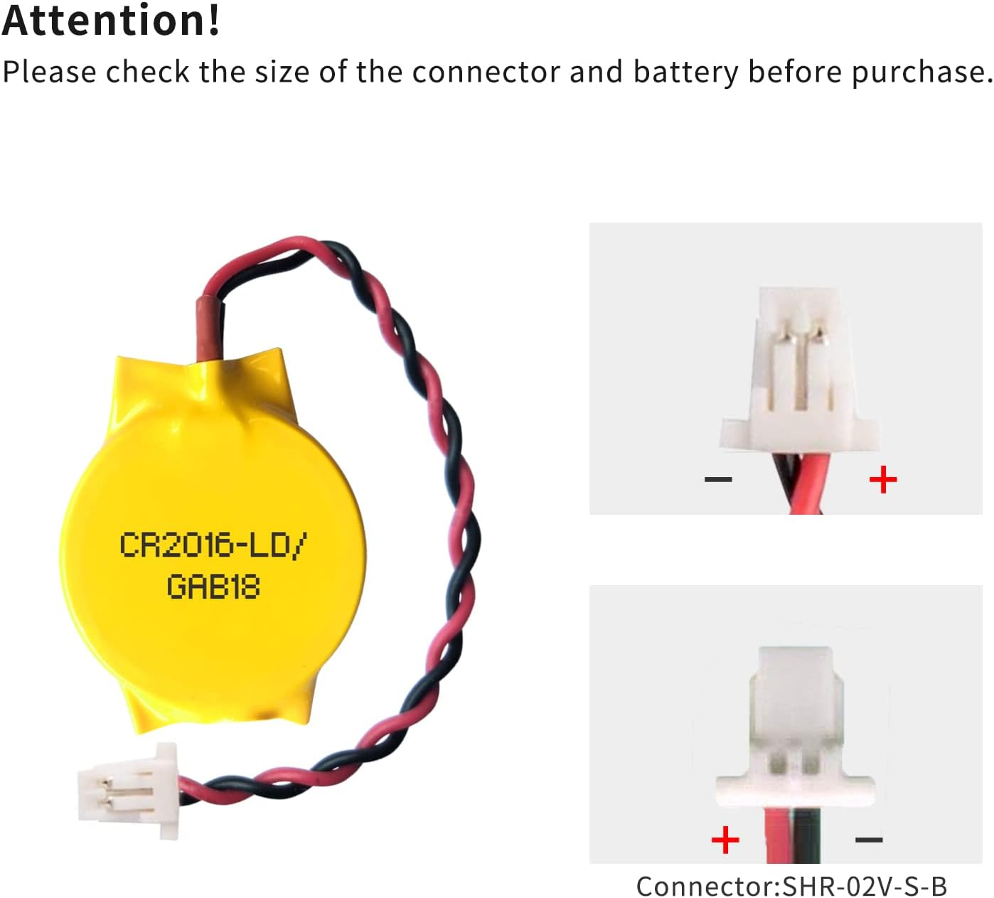 Basic INFO-spänning: 3 V; kapacitet: 85 mAh; diameter: 20,5 mm, höjd: 2,7 mm. Stickkontakt: CR2016-SHR02, detta är omvänd polaritet. Uppmärksamhet: Ladda inte!
