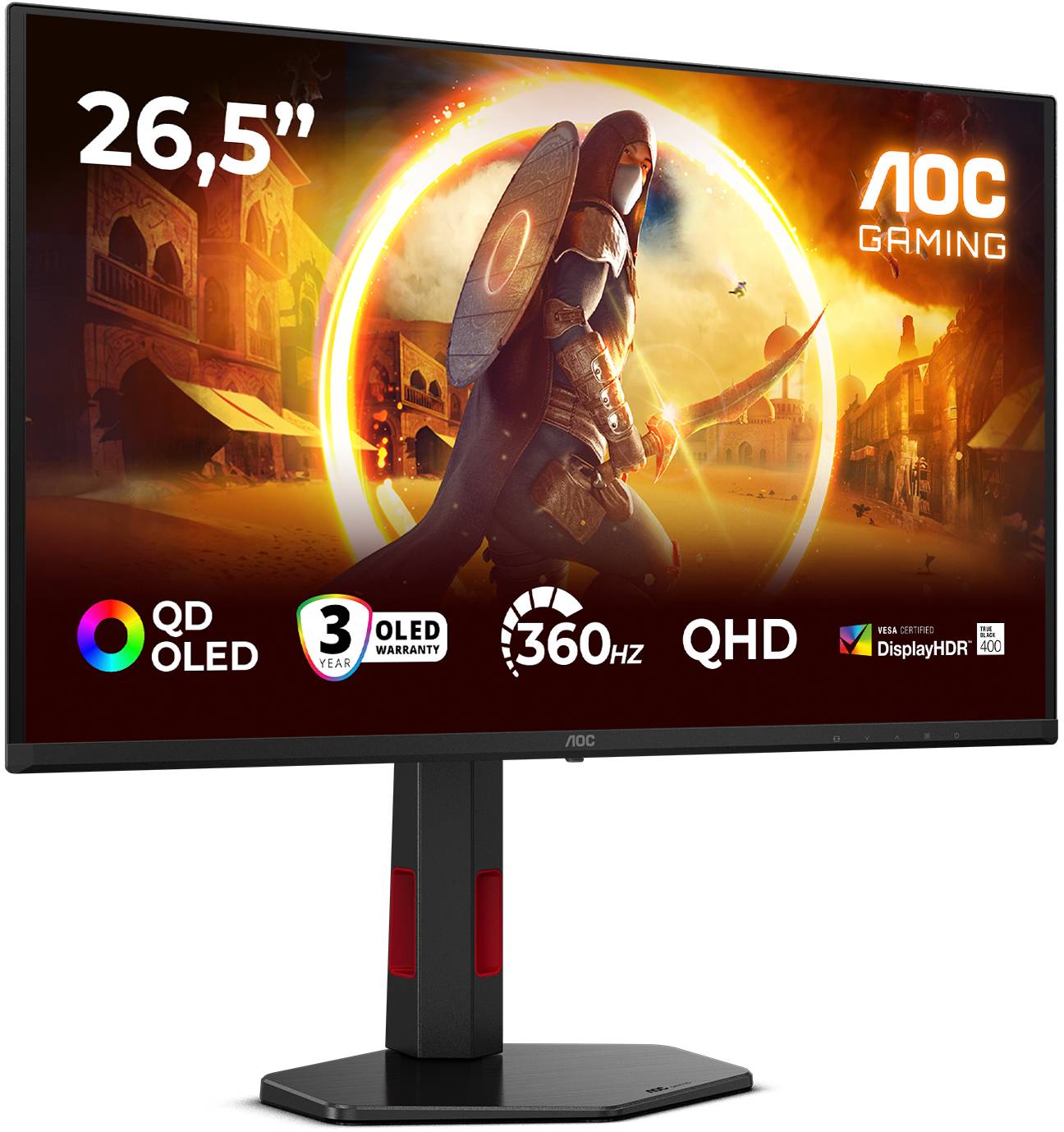 26.5" AOC Q27G4SDR, QD OLED 4K/3840x2160, 0.03 ms, 360Hz G-Sync, höjdjusterbar, pivot, 2xHDMI/DP, USB 3.2-hubb