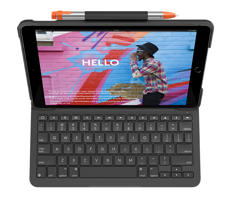 Logitech Slim Folio Keyboard Cover for iPad 10,2 tum (7:e /8:e generation), Bluetooth, tyskt - Grafitgrå